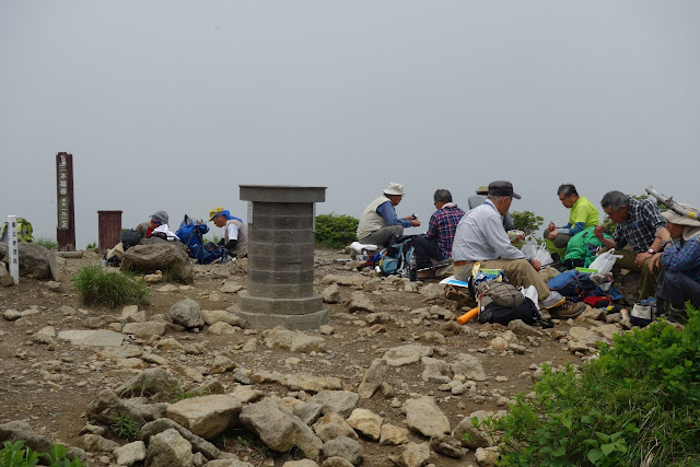 從朝日岳頂上下來前往熊見曾根 ,走在山脊上,欣賞那須高原火山群峰,美麗的雲層飄過一座一座山頭,讓熾熱的火山高峰色彩更為豐富.經過了1900m高點,再下去清水平,從清水平前往三本槍岳(1917m),在這裡遇到了一些日本老男人的登山隊,他們正在三本槍岳頂上午餐,還有健步如飛的日本老太太登山隊,真是一群快樂的健康老人,日本皇太子提倡登百名山,肯定幫日本省了不少醫藥費的社會支出。